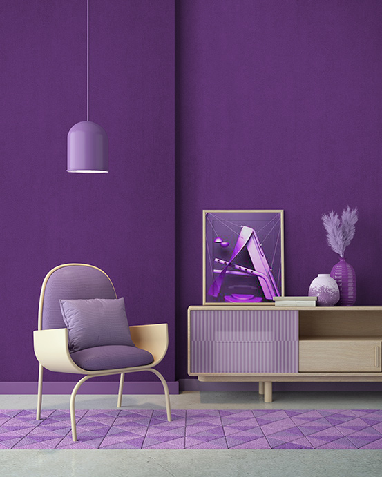 ایجاد حس لوکس و شکوه به فضا؛ رنگ بنفش معمولاً با القای فضایی باشکوه و خاص همراه است.