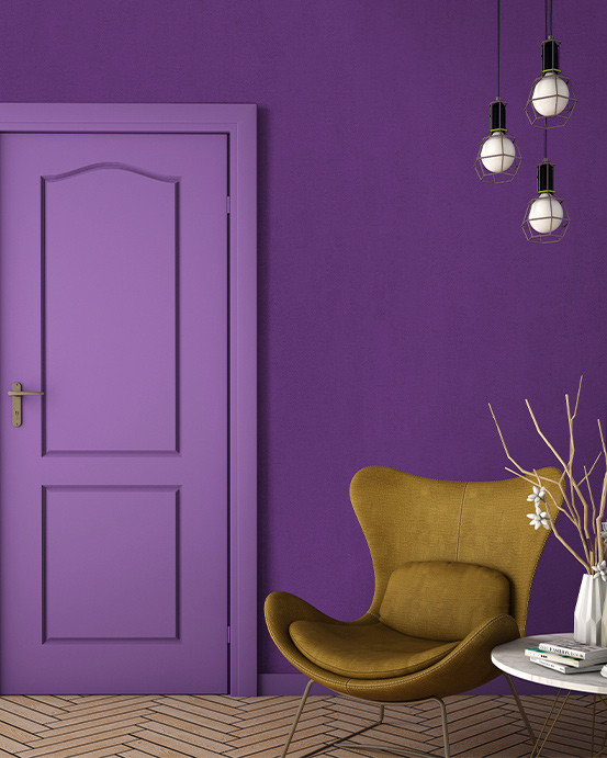 ایجاد حس لوکس و شکوه به فضا؛ رنگ بنفش معمولاً با القای فضایی باشکوه و خاص همراه است.